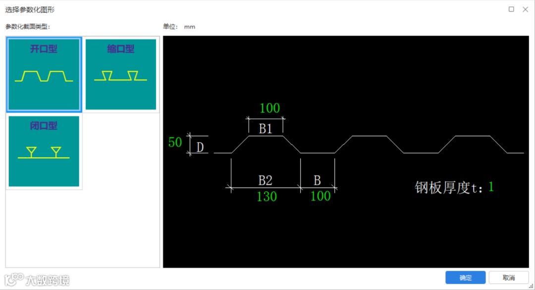 价值1:新增开口型、缩口型、闭口型,三种截面压型钢板,精准计算型钢面积工程量。