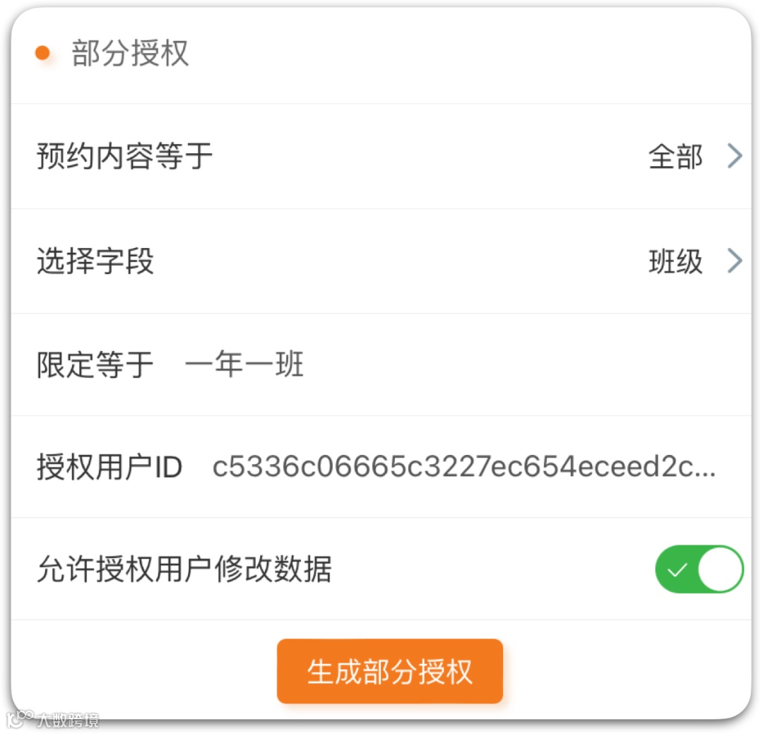 「部分授权」示意图:可查看班级为「一年一班」的预约数据