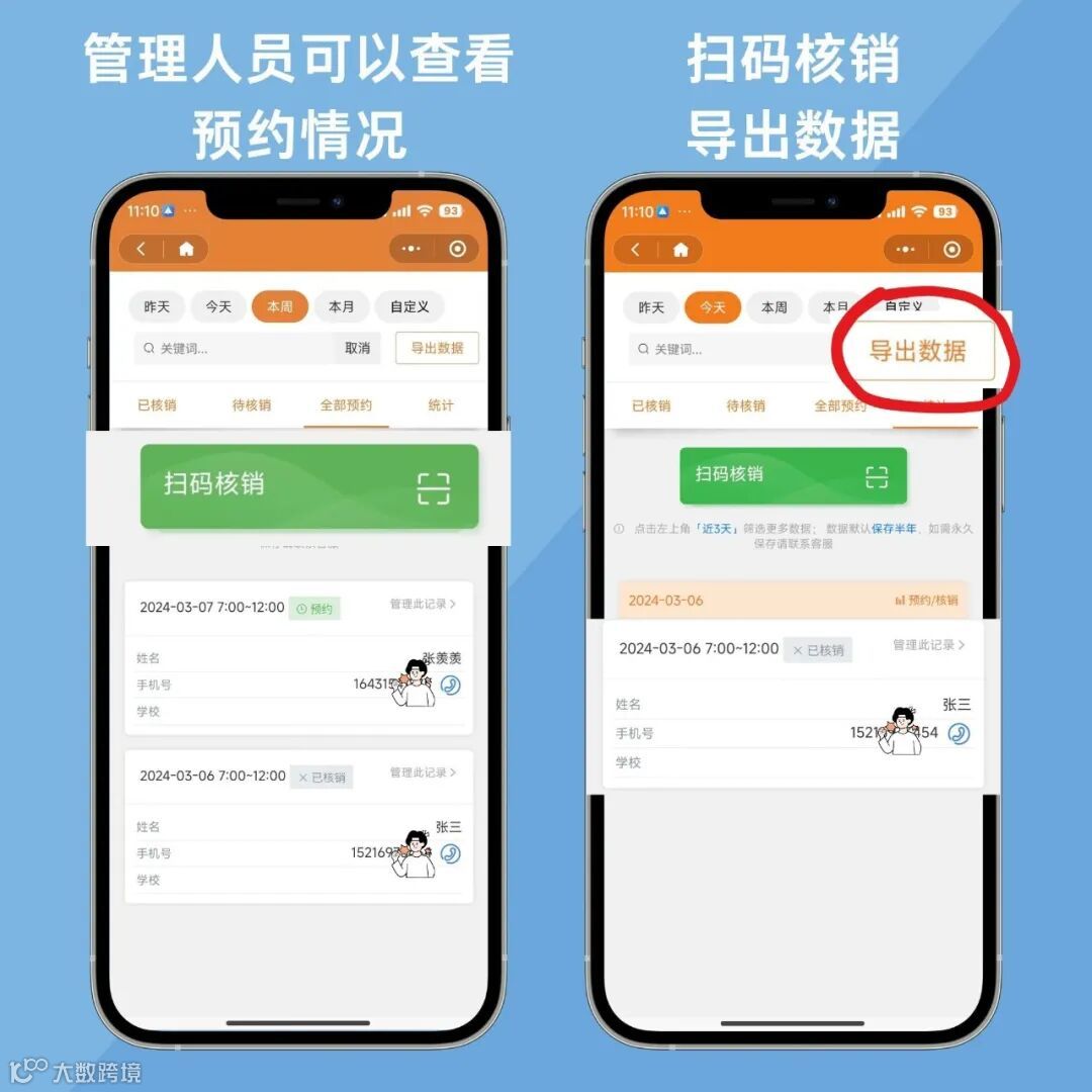 [表预约]小程序支持多人管理,可设置管理不同的权限如查看、核销预约(或修改、删除和下载权限)。
