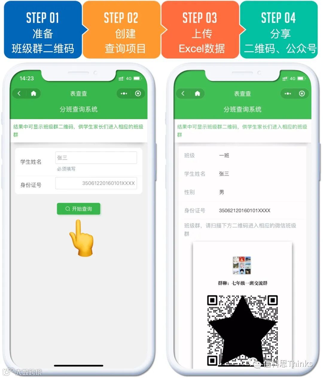 输入准确的学生信息后,可查得学生的班级信息(可自定义文字或图片信息,如班级群二维码、老师微信号等),如下图所示。
