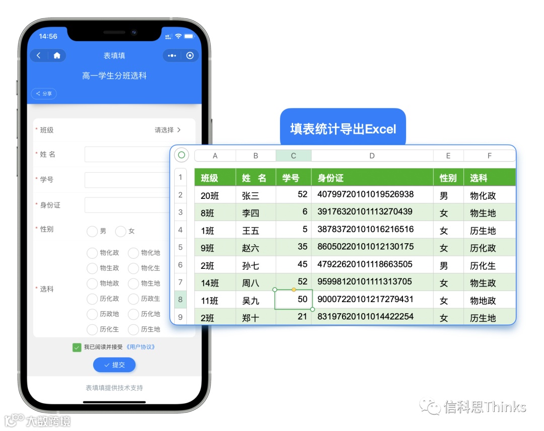 高一选科登记表助力家校合作,实现一键导出Excel,支持分班选科查询