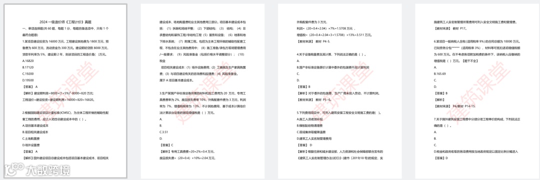 1、《24年一级造价师真题》:能帮助了解考试题型、命题规律和考试难度,熟悉考试流程,提高答题技巧和应试能力。
