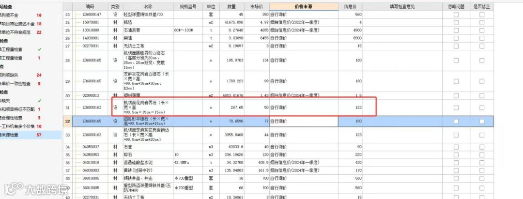 ②人材机检查可以快速对价格、价格来源进行检查,避免价格差异;