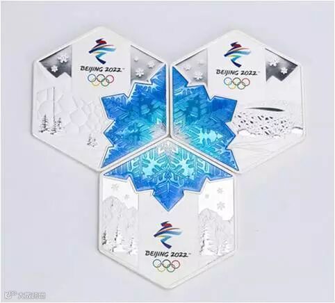 背面中心为北京2022年冬奥会会徽,四周环绕雪花。