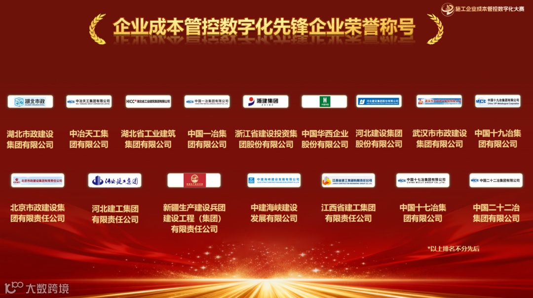 为鼓励特大型施工企业广泛参与,在国央企高质量发展大背景下优中选优,大赛特面向国央企大系统总部及二级单位开设内赛通道。大赛组委会特别设立2025年度企业成本管控数字化先锋企业” 荣誉称号,表彰在成本数字化实践中率先垂范、深耕内部人才孵化的19家标杆单位。中国建筑业协会副会长景万、北京交通大学经济管理学院教授刘伊生、北京市建设工程招标投标和造价管理协会会长吴佐民、中国建设工程造价管理协会第七届副理事长兼秘书长王中和为这些先锋企业颁发荣誉奖牌。