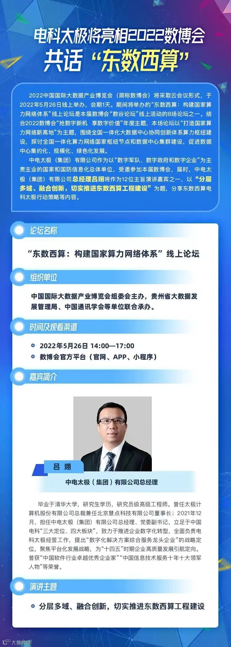 精彩预告|电科太极将亮相2022数博会 共话“东数西算”