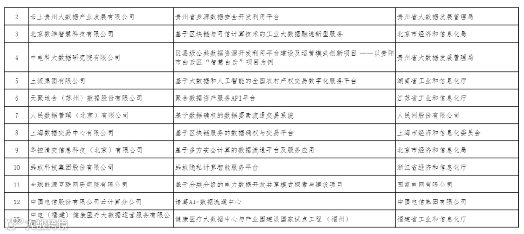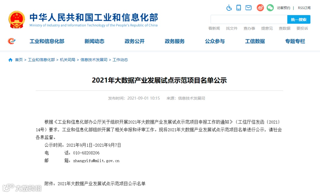 2021年9月1日,工业和信息化部公示了2021年大数据产业发展试点示范项目名单,工业大数据应用、行业大数据应用、数据重点产品、数据管理及服务等4个领域共10个方向的204个项目入选。中电科大数据研究院有限公司(以下简称:大数据院)申报的《区县级公共数据资源开发利用平台建设及运营模式创新项目——以贵阳市白云区“智慧白云”项目为例》成功入选。