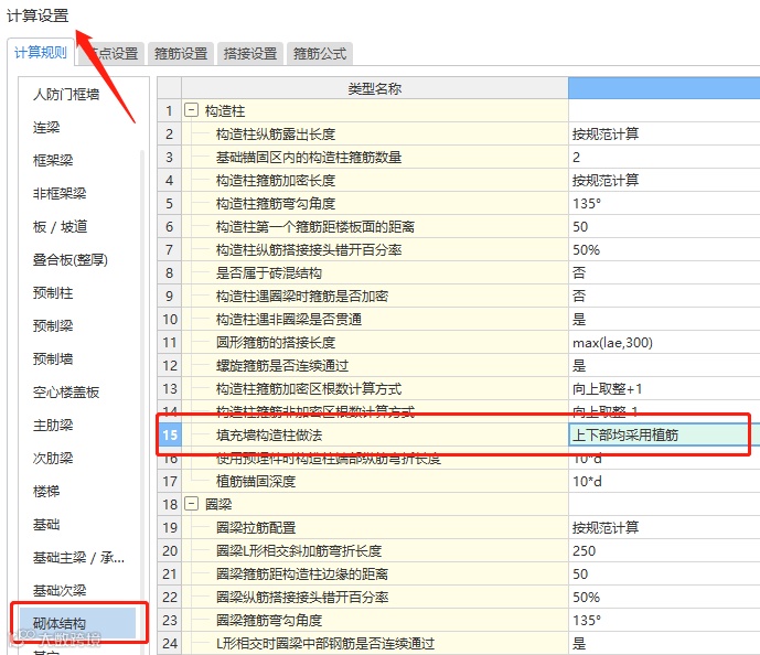 举个例子:某项目第二层共有10根构造柱,那么需要植筋的数量为:10×4×2=80根。构造柱植筋在广联达软件中的处理方式如下图所示: