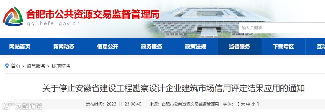 安徽:自即日起,停止安徽省建设工程勘察设计企业建筑市场信用评定结果在招投标领域的应用。
