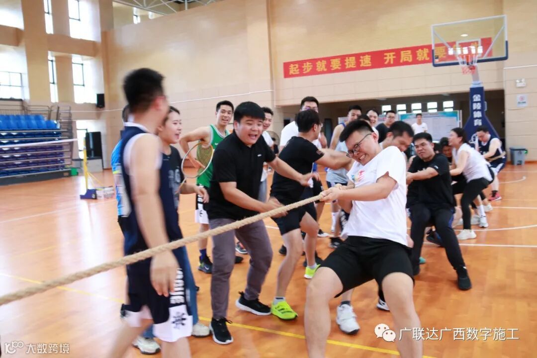 经过了一上午的“悟文”环节,广联达南宁分公司施工渠道与造价渠道本着“友谊第一,比赛第二”的原则开展了运动争霸赛。本次争霸赛设置了拔河、篮球、两人三足、羽毛球四个项目,各参赛队员斗志昂扬。