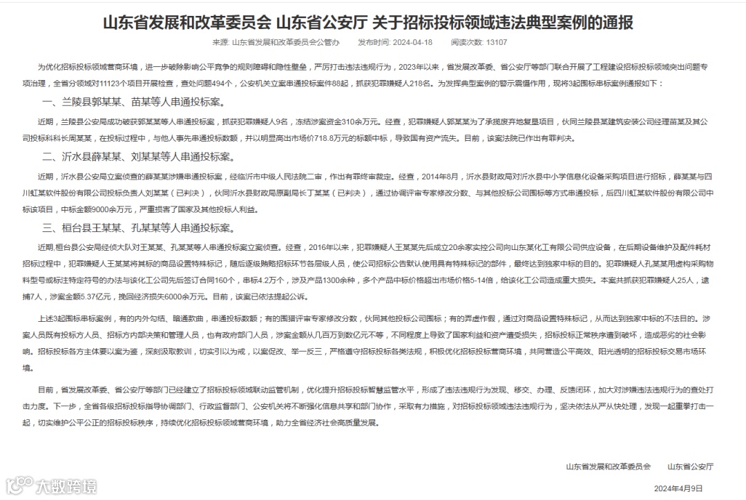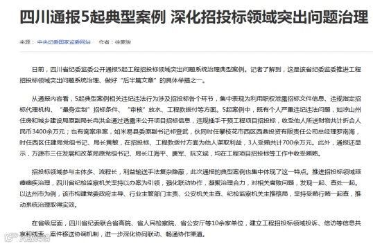 以上为几个省级通报的起招投标过程中存在违法行为的典型案例,相关人员已受到法律制裁,这也是给我们警钟长鸣、强化震慑,不要让招投标领域成了某些人牟利的重要途径,既破坏了市场公平竞争,又影响建设领域健康发展。