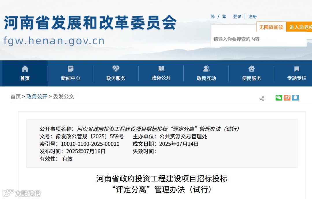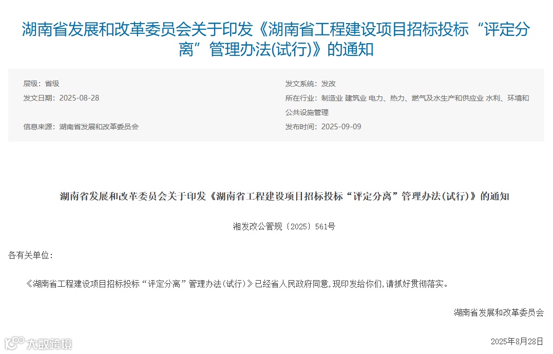 5、《工程建设项目招标代理机构管理暂行办法》已经2025年9月26日第23次国家发展改革委委务会议审议通过和工业和信息化部、住房城乡建设部、交通运输部、水利部、农业农村部审签,现予公布,自2026年1月1日起施行。