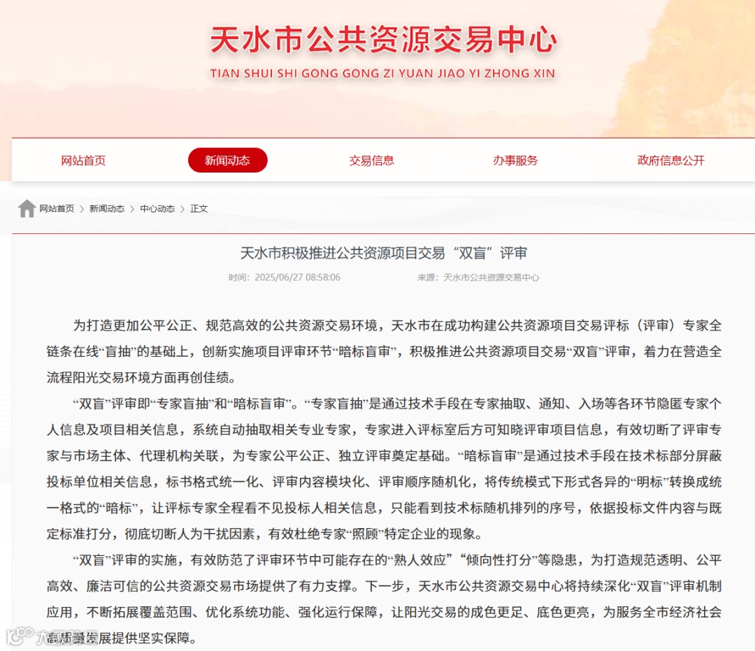 4、评标方法优化与监管:从招标文件中评标方法的优化,分值的设定,技术标方案的合理性、适用性、创新性的要求,商务标价格的合理性,业绩的匹配度等涉及的评分项的内容进一步创新。推行隐藏投标人信息的暗标评审。积极试行投标人资格、业绩、信用等客观量化评审,提升评标质量效率。