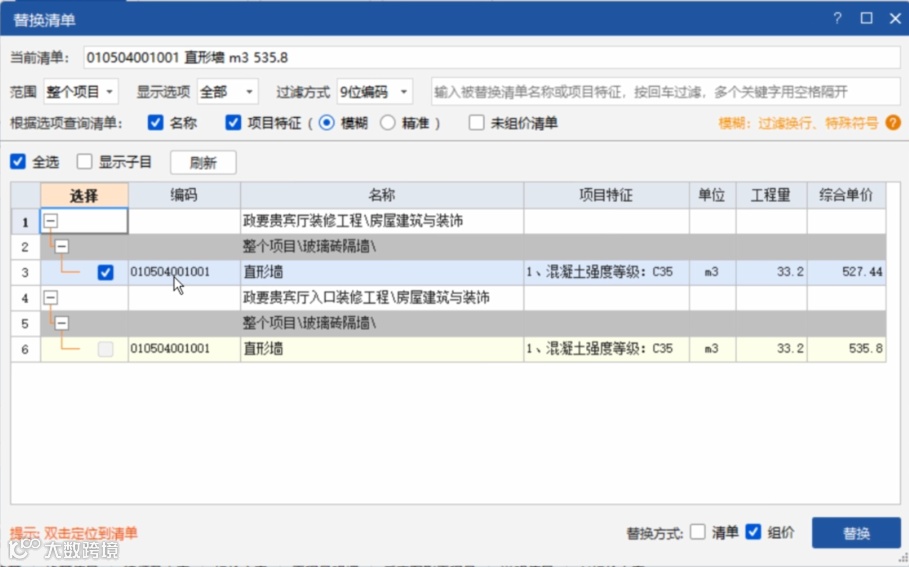 1. 相同清单项组价错误或存在优化空间时,批量替换/更新;