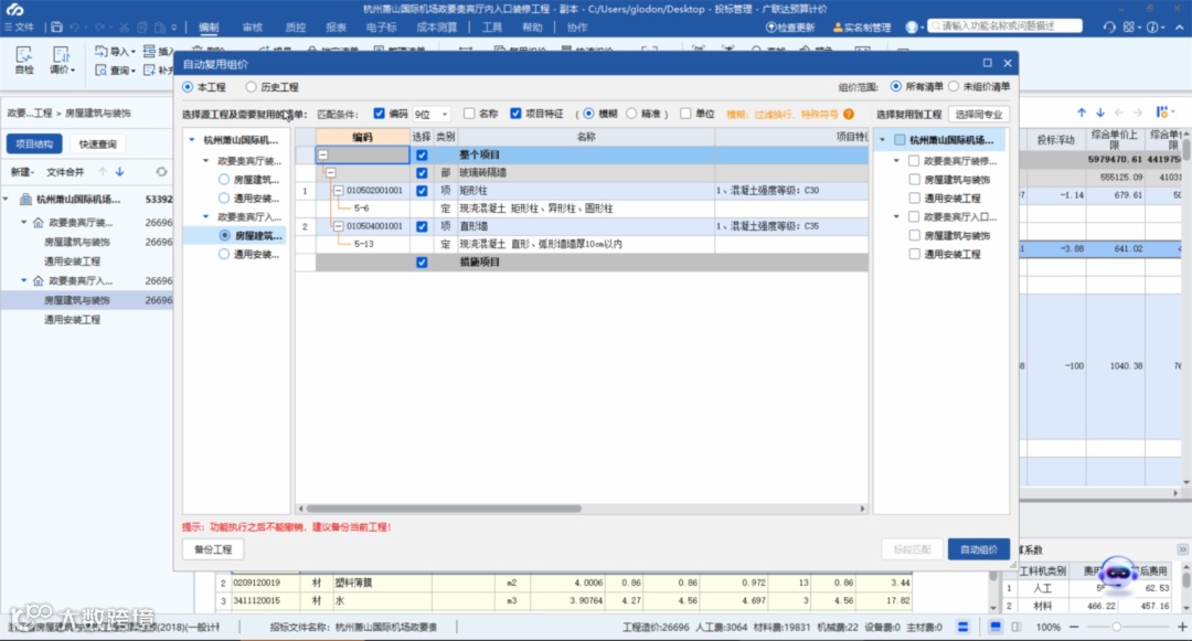 操作流程简单清晰:选中清单→选择复用来源→匹配条件→完成组价,新手上手也无压力。