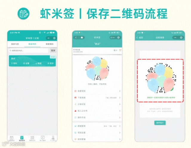完成签到系统的设置后,虾米签小程序会自动生成一个签到二维码。组织者可以将这个二维码打印并粘贴在签到处,或直接在电子屏幕上展示。参会者只需扫描二维码,即可快速完成签到。