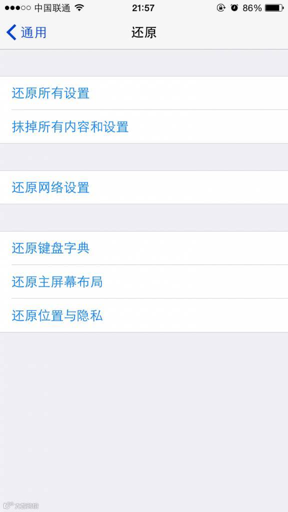 3.点击“还原位置与隐私”,输入设备的密码,然后确认你要还原 iOS 设备上所有的位置与隐私设置