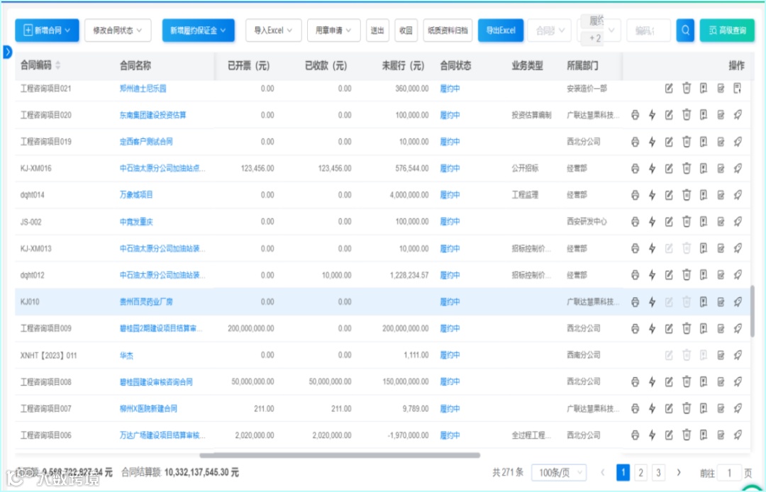 ③项目信息与合同数据关联管理