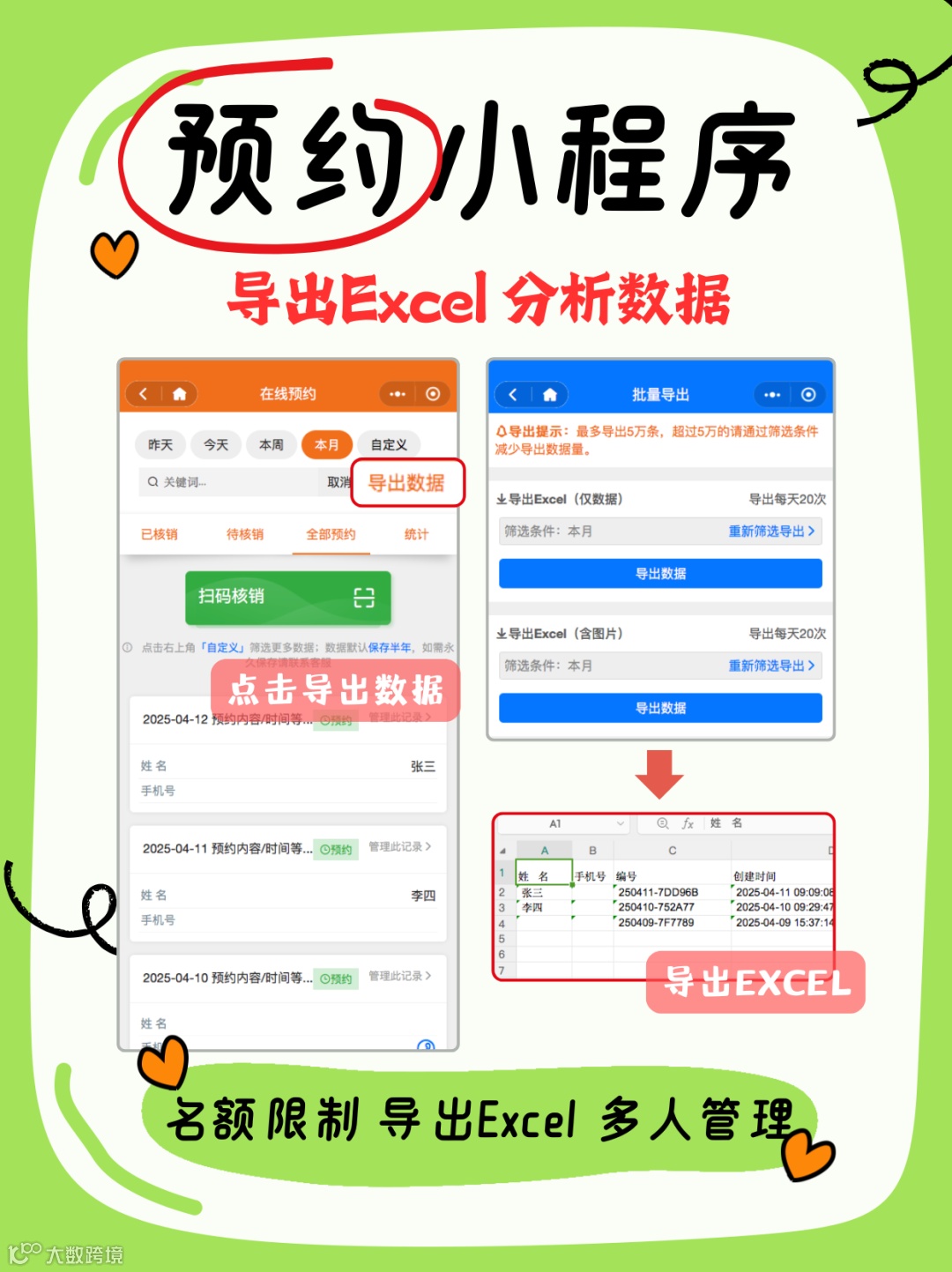 导出Excel功能便于景区统计预约数据,为精准管理提供数据支持。