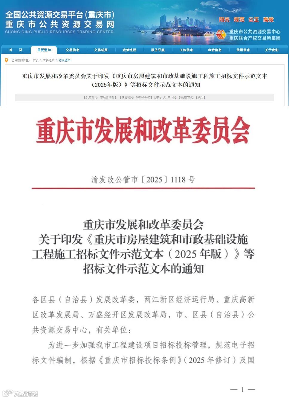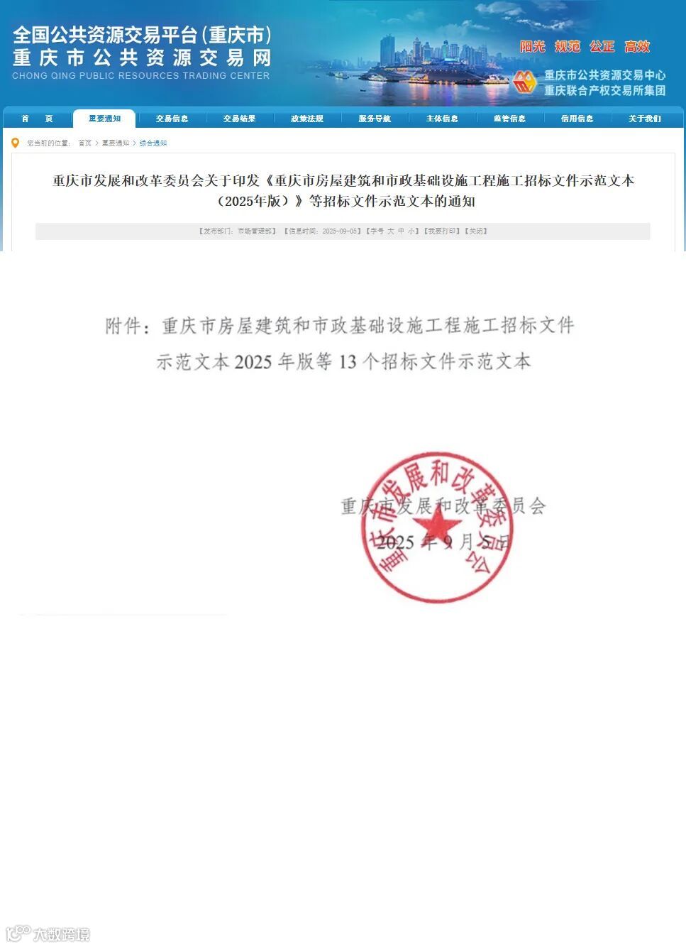 重庆市发改委关于印发《重庆市房屋建筑和市政基础工程施工招标文件示范文本(2025年版)》等招标文件示范文本的通知提到: