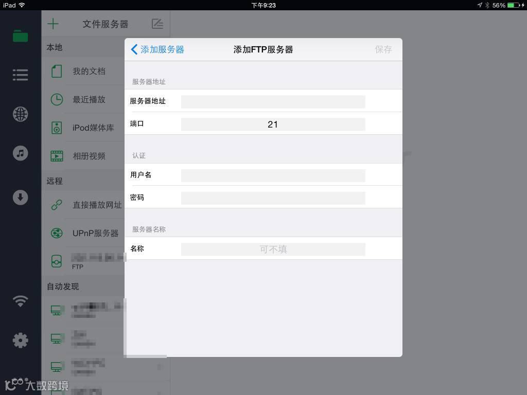 9. 在 iPhone/iPad 上下载免费版 OPlayer,点击左上角加号,然后选择 FTP 服务器。