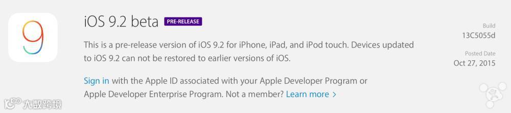 此次更新的 iOS 9.2 beta 版本序列号为 13C5055d,需要注意的是,苹果已经对想要升级测试版本的开发人员作出提醒,新测试系统升级后将无法还原到早期版本的 iOS 系统。因此是否进行升级,普通用户们需要谨慎考虑。