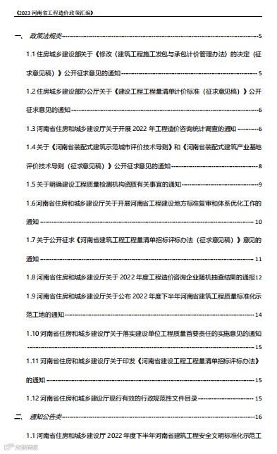 《2023河南工程造价政策汇编》,汇总了2023年河南省住建厅、河南省人事考试中心等多份多种类政策文件、通知公告及年度专业考试等内容,可帮助您更好了解本地工程造价相关行业政策,助力您更好学习政策并且运用政策。