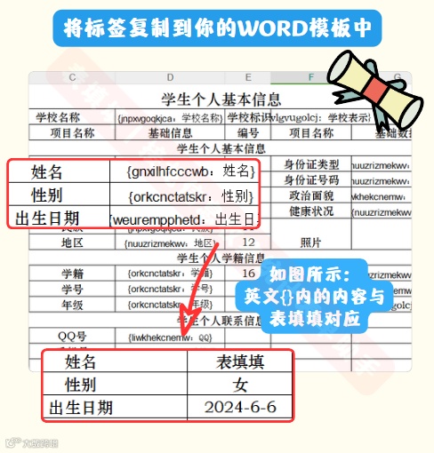 只需准备好Word模板并标注好需要替换的文本内容,然后将他们整理成一个表格,表填填即可根据填写在表格中的内容自动生成一个完整的Word文档,从而极大地缩短了修改时间,并且无需再进行复制、粘贴、替换等繁琐步骤。
