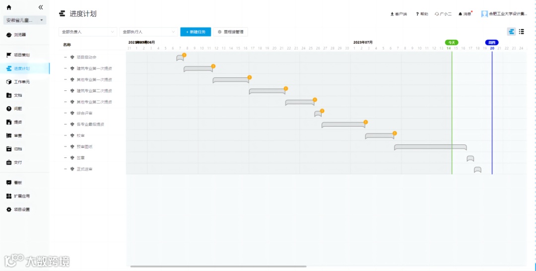 项目实施前,通过协同平台对项目人员进行任务分配及进度策划,各专业人员实时交互、共享文件,通过平台管理工具实现精细化管理。设计过程中,通过“云+端”的工作模式,改变以往文档式协作方式,实现专业间构件级数据协同,实现一处修改、处处更新,极大提升了协同效率。