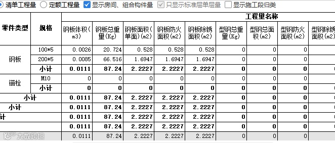 项目中存在梁粘钢加固与板底粘碳纤维布加固需分别统计钢板面积、压条长度、锚栓数量、纤维布延米等工程量。由于市面主流造价软件未内置此类特殊工艺的计算方式和规则,所以只能在excel中手工计算,但因加固区域量尺寸、材料规格等不同,手工计算公式编辑比较复杂,最终导致项目中频繁出现工程量遗漏或重复计算等问题,单层梁板加固算量误差率高达5%。
