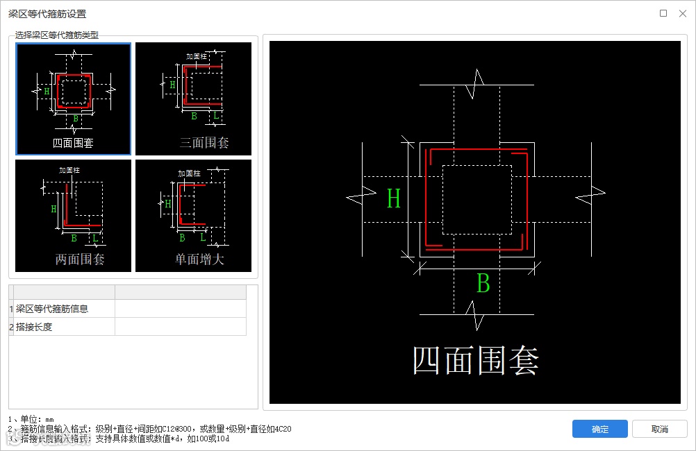 · 针对梁粘钢加固,软件会根据梁截面及跨长尺寸自动计算箍板、锚栓工程量,也会根据梁与板相交的关系自动计算U形箍工程量;