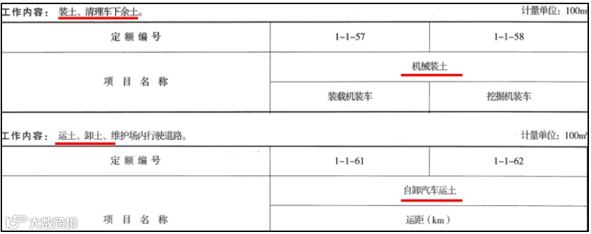 如土方为单独外运,由于基坑里不能进大汽车,是否先运到基坑外(内运),集中后再外运?如是,则产生二次的装、运费用。因为很多省市的定额,机械运土不包括装车,装车另有独立的定额子目(下定额截图)。另外,外运的运距是多少等……总之,要表达的东西很多,需根据合同条件,融合一线作业场景才能做出完整完善的签证。