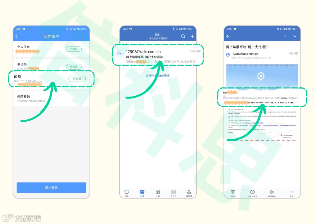如果12306账号绑定了邮箱,我们在购票时,12306会向我们的邮箱发送一条购票邮件,在这个邮件中我们也能看到所乘坐列车的车票订单号以及行程信息。