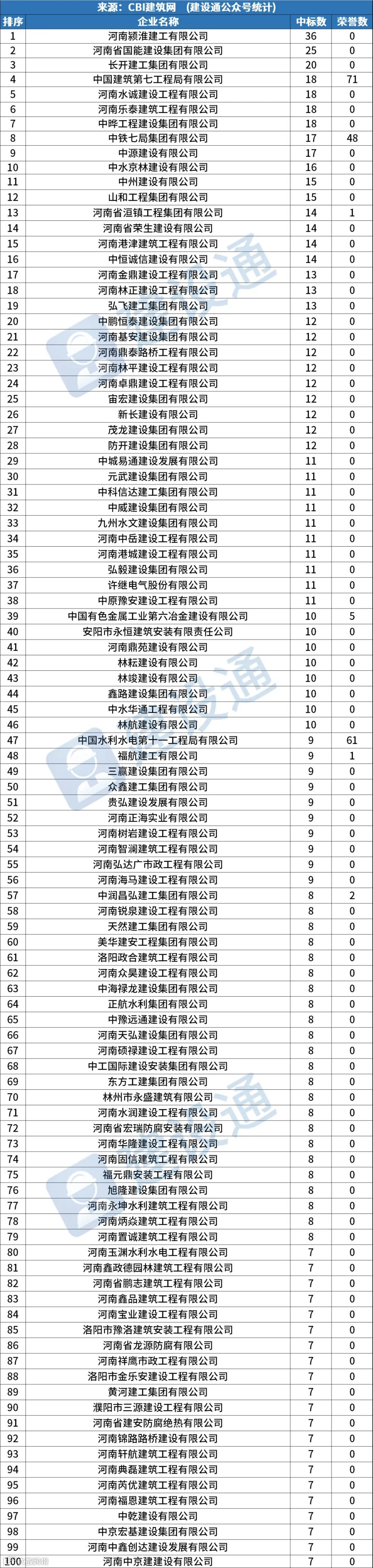 CBI建筑网综合报道:在2023年10月,河南建筑施工企业中标数量达6295项,环比(与上个月相比)下降11.88%,同比(与去年同期)上升21.41%。其中,河南颍淮建工有限公司、河南省国能建设集团有限公司、长开建工集团有限公司分列中标数量排行榜前三位。