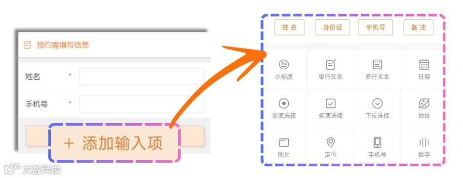 在表预约小程序中,创建一个新的报名表单,包括必填项如姓名、联系方式、证件号、以及其他根据活动需要设置的自定义字段,如单位名称、紧急联系人等。