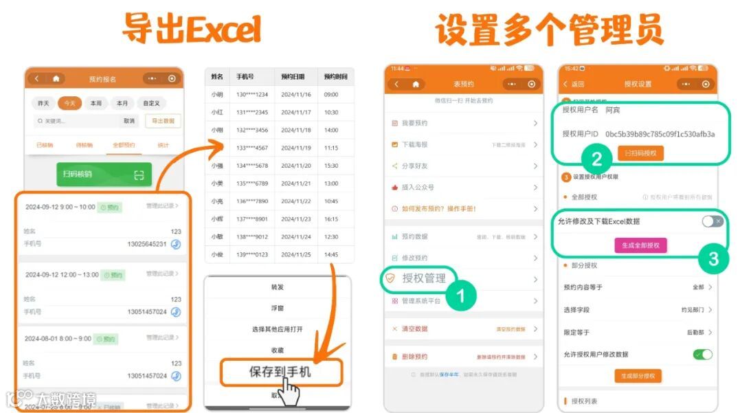 如需多人协同管理报名人员信息,可设置全部或部分授权(查看、修改、删除、下载数据)。