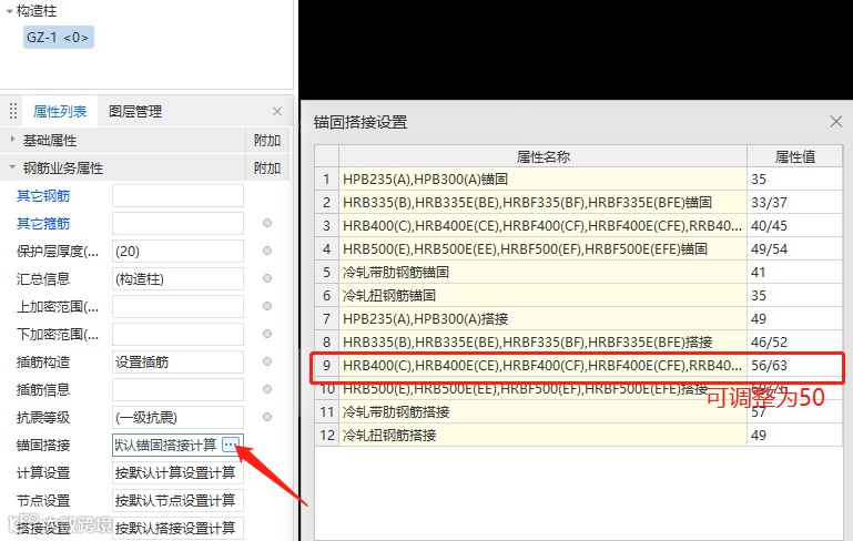 为了算量更加精准,可以修改一下软件默认的锚固设置,如下图所示: