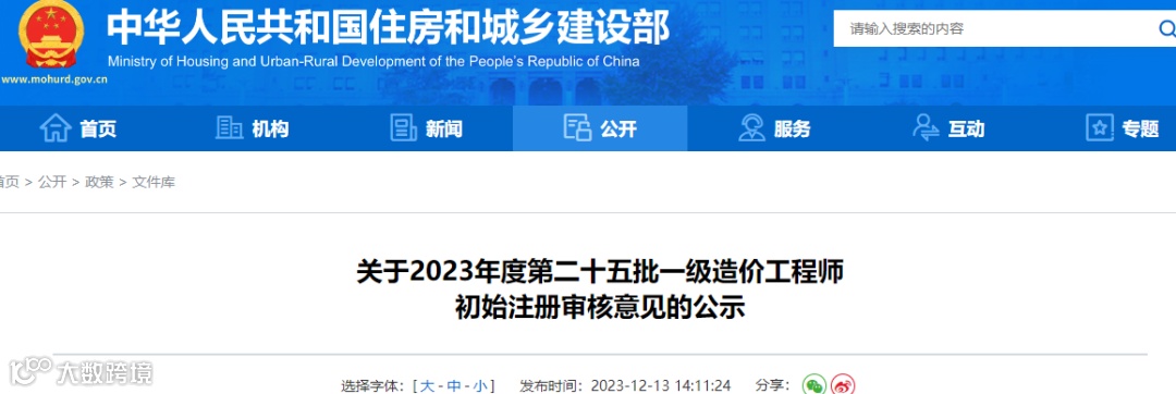 根据《注册造价工程师管理办法》(建设部令第150号)有关规定,经审核,路建凤等1089人符合一级造价工程师初始注册条件,田静等422人不符合一级造价工程师初始注册条件,现将名单予以公示,公示期为:2023年12月13日至2023年12月26日。