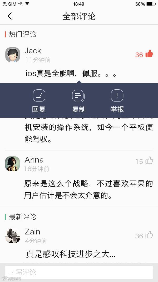 我们重新规划了新闻回复机制,采用热度瀑布流的形式来展现形形色色的用户评论,这样你可以快捷的跟锋友互动交流,不管是段子手还是高级黑都可以秀出来。