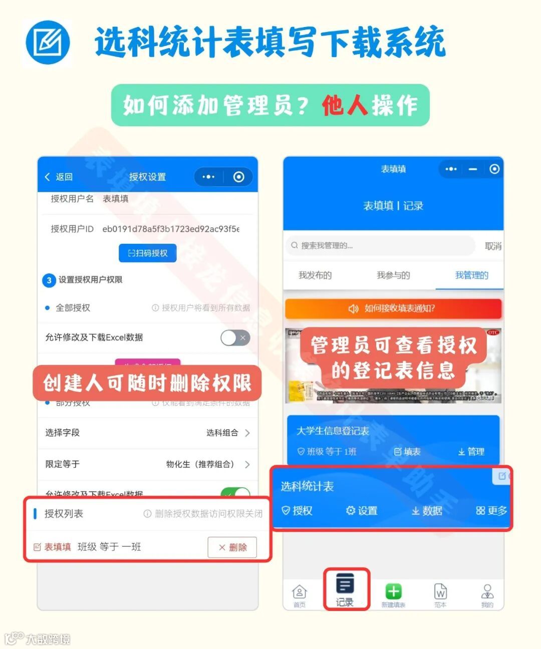 创建人如果在授权过程中授权错误,可以直接在授权列表【删除】授权数据,而被授权的老师可以在【我管理的】页面,查看被授权的表单信息。