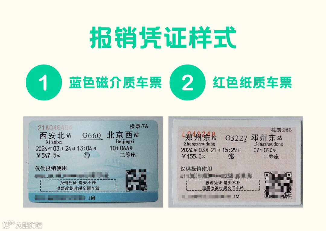 需要报销车票费用的话,需要打印出报销凭证并将其带回公司走报销流程就可以了,报销凭证的样式如下图所示的两种样式,分别为蓝色磁介质报销凭证和红色纸质报销凭证,两者均用于报销车票费用使用。