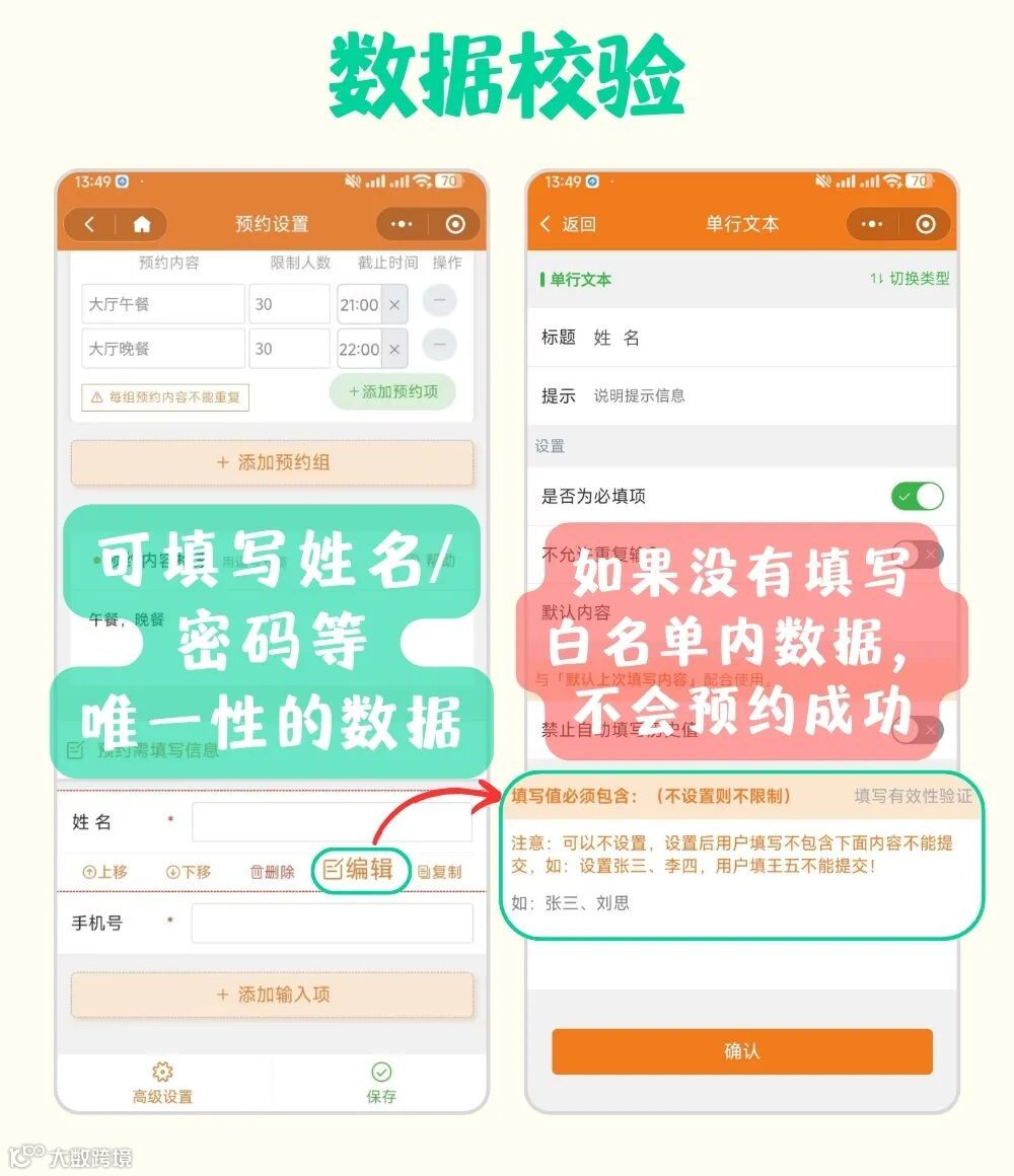 设置白名单:创建者设置预约白名单,只有名单内的人可以预约(可设置名字、工号、手机号等唯一信息作为白名单的依据)。
