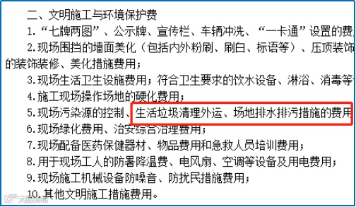 解决办法:施工单位将河北省现行的安全文明施工费文件,即《建筑工程安全防护、文明施工措施费用及使用管理规定》(建办【2005】89号)之附件1《安全生产、文明施工费费用组成》拿给甲方看,逐条捋了一遍,发现此文件只是说明生活垃圾包含在安全文明施工费中,本项目施工单位单独列项的不是生活垃圾,只是因施工产生的建筑垃圾,未包含在安全文明施工费内。最终,招标方认可了施工单位的意见,渣土清运单独列项记取(仅限因施工产生的建筑垃圾)。