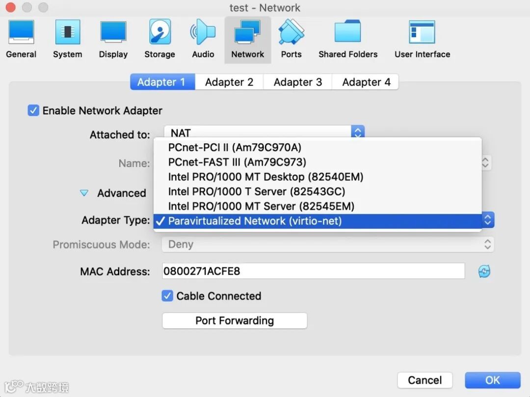 VirtIO 是一个接口,可用于开发半虚拟化的驱动。Virtio-net 就是这样一种驱动,它的来源是 Linux 且用于网络。VirtualBox 和其它虚拟化软件一样,将这类驱动当作网络适配器: