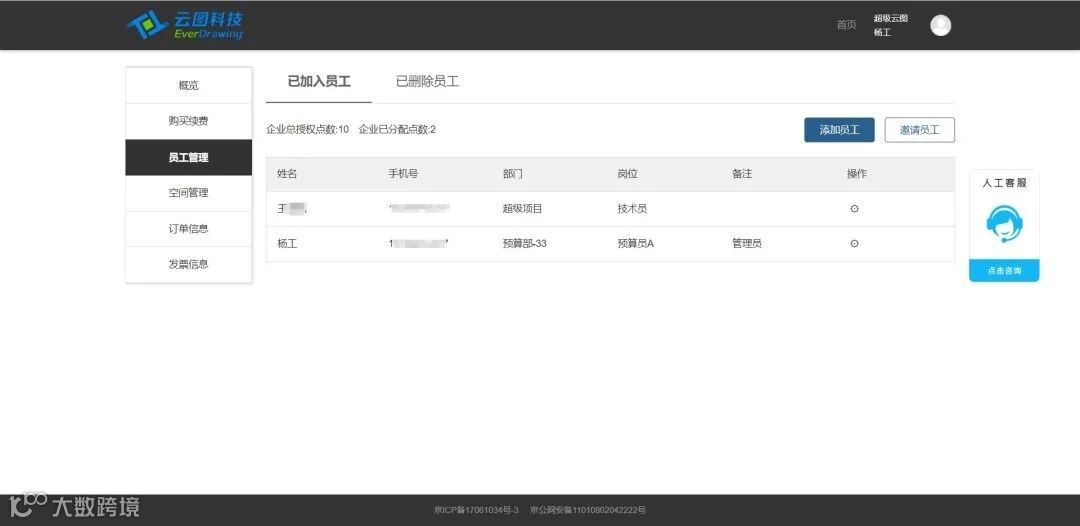 CAD快速看图面向企业用户提供的账号管理服务。企业可以方便的进行会员购买、权限分配、资产管理等操作,员工可以享受CAD快速看图所有会员功能。企业统一购买更便捷,权限分配更灵活,数据资产更安全,自主产权更安心,资产管理更省心。