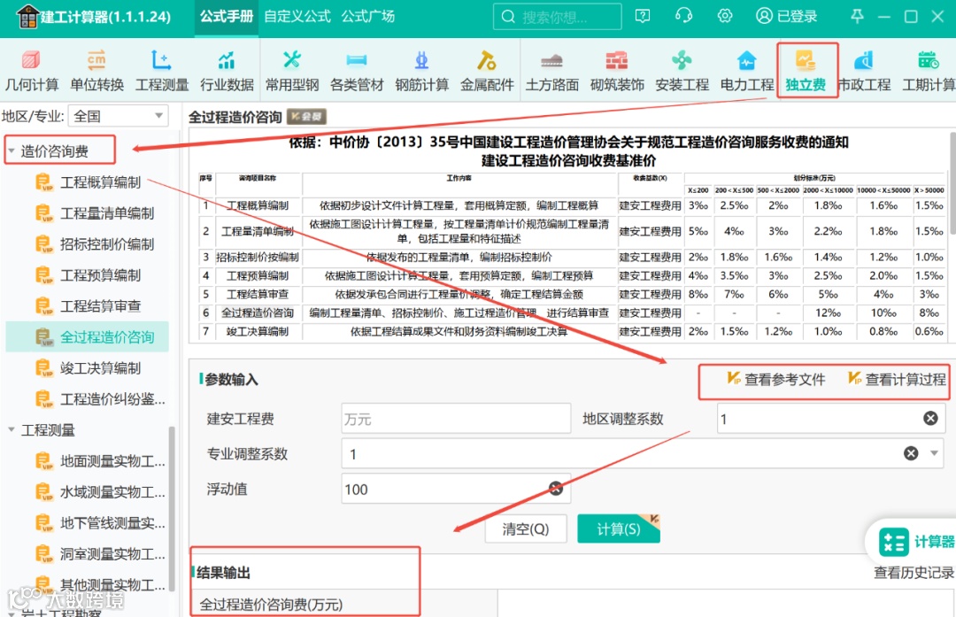 其实,算好这笔 “精细账”,未必需要复杂的系统。建工计算器的独立费模块,就是为这类场景量身打造的利器。