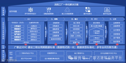 未来广联达致力于和生态伙伴一起,持续深度探索,打造流程工厂一体化解决方案,以三维设计为基础,行业数据标准为载体,贯通采购、施工、交付运维环节,结合生态伙伴为推手,实现流程工厂全链路一体化应用服务。