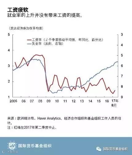 劳动力市场持续疲软(表现为一些国家失业率仍然很高或者非自愿兼职失业处于高水平)以及生产率增长低迷是工资增长缓慢的主要原因。