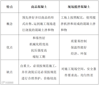 本案例因现场使用的混凝土是商品混凝土还是现场搅拌混凝土产生造价纠纷,那二者有什么区别呢?下面以表格的形式进行对比,让大家更直观的辨别二者的差异。