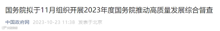 关于2023年度国务院推动高质量发展综合督查征集问题线索的公告